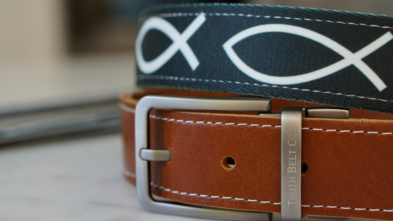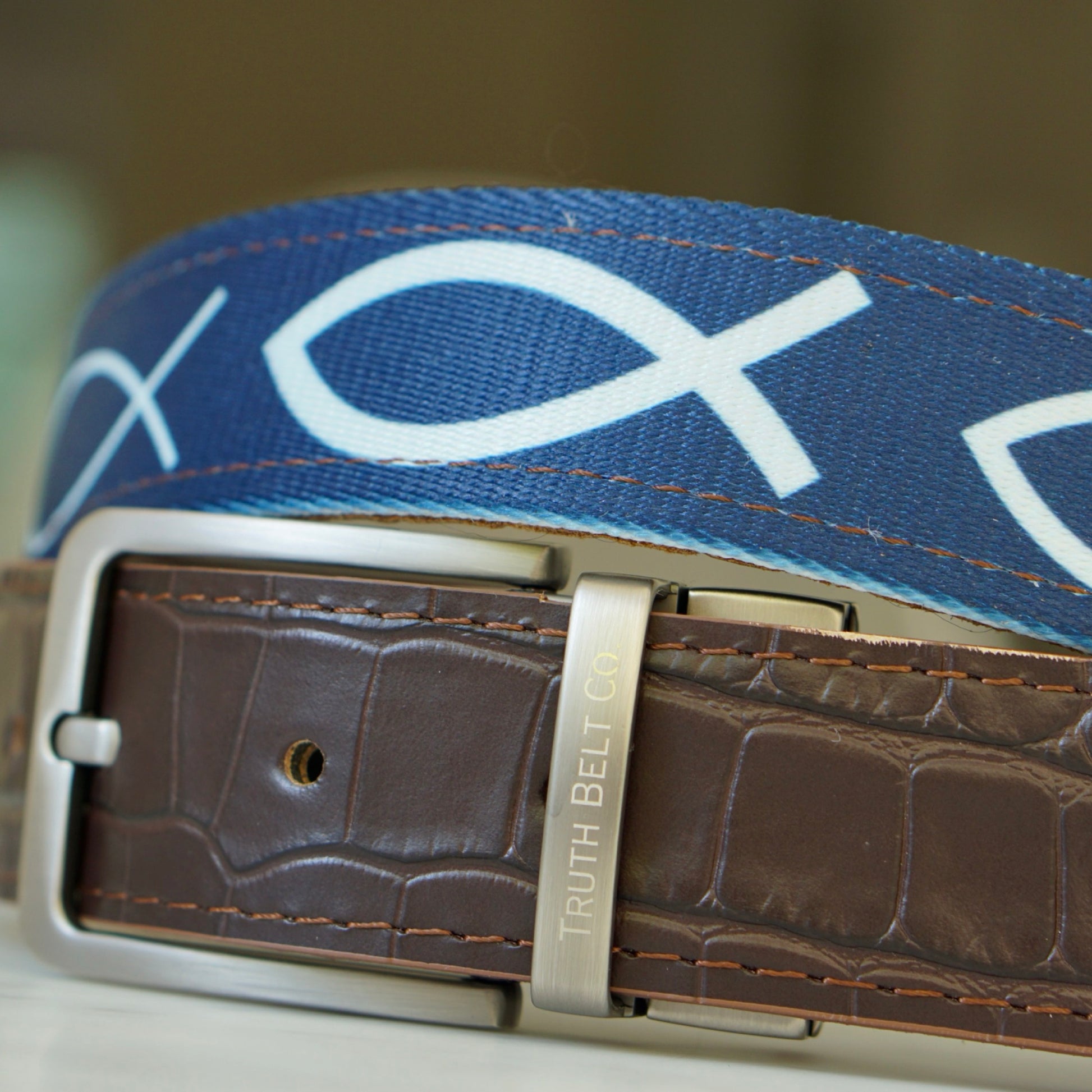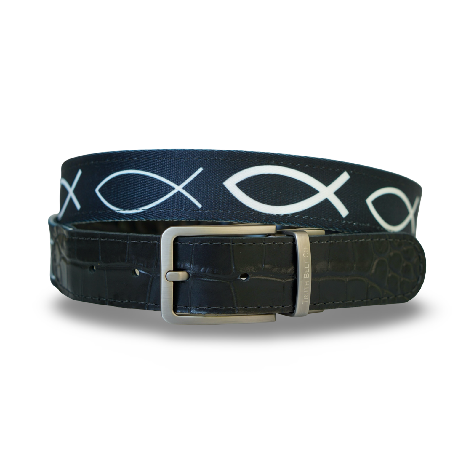 Crafted with premium leather & webbing, the Fish Belt combines durable materials with custom designs that reflect the strength of your faith. Every time you wear it, you're reminded of the enduring legacy of Christianity and your place within it.