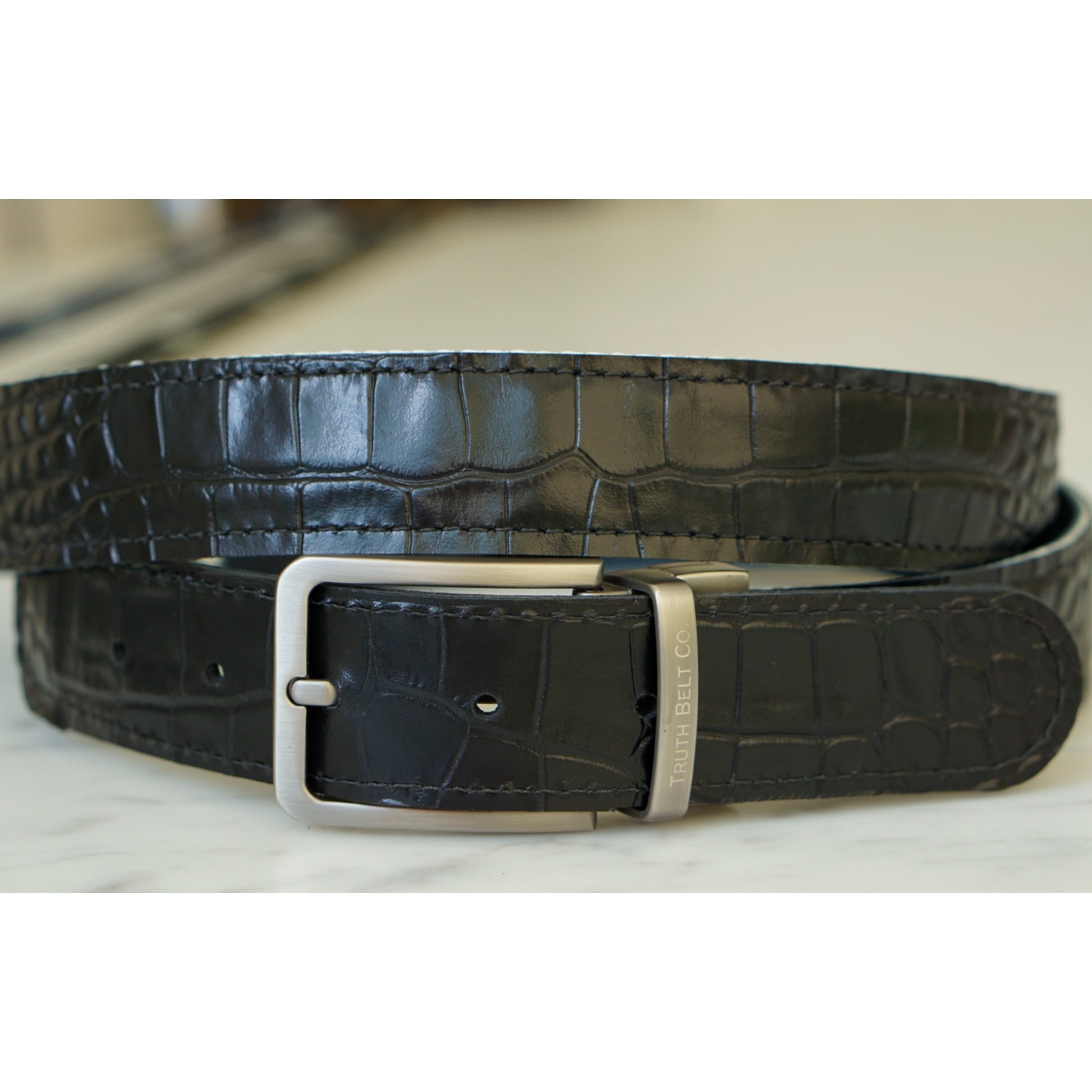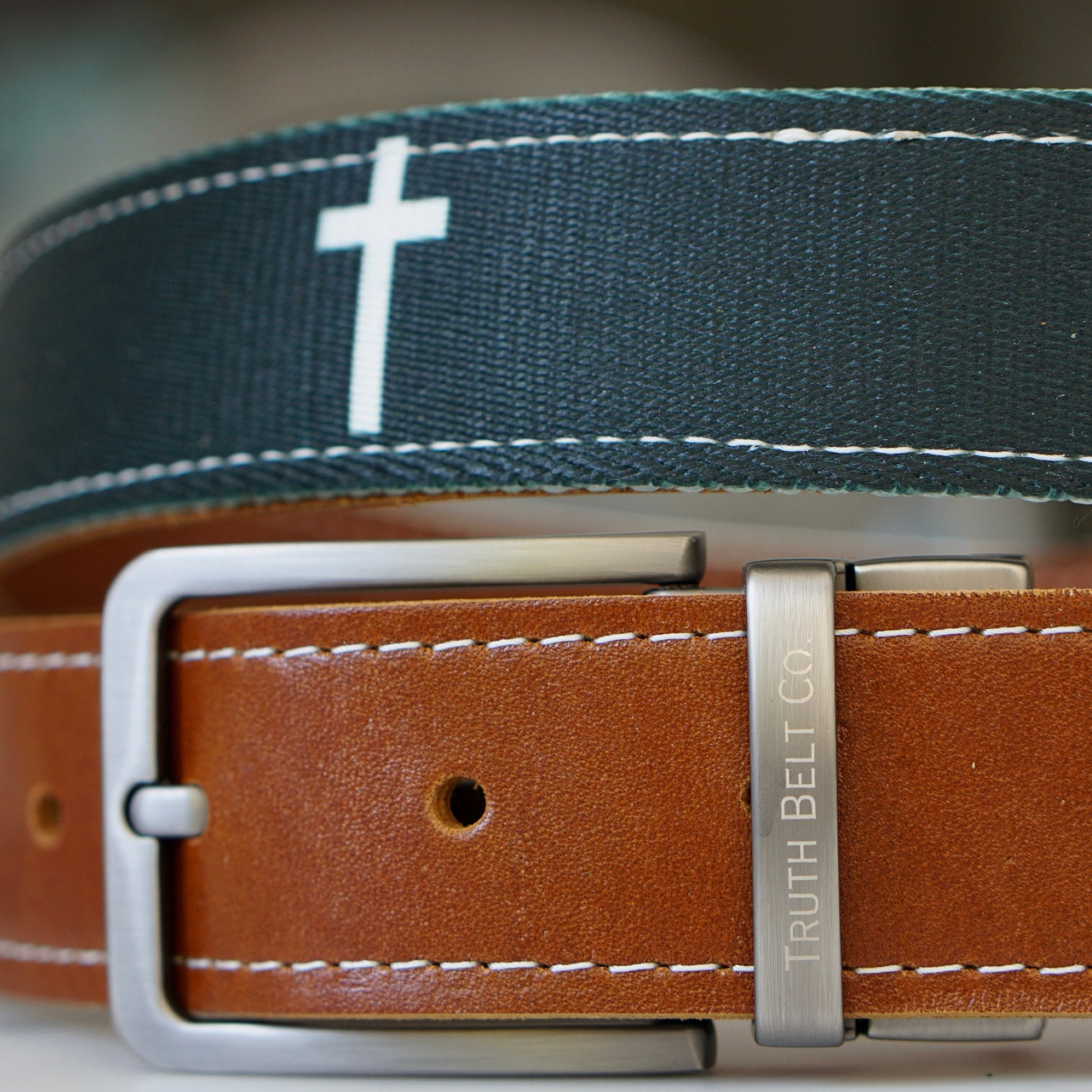 The custom engraved reversible buckle lets you easily switch between two distinct looks. Whether casual or formal, this belt allows you to display your faith in a way that suits your style while representing the cross.